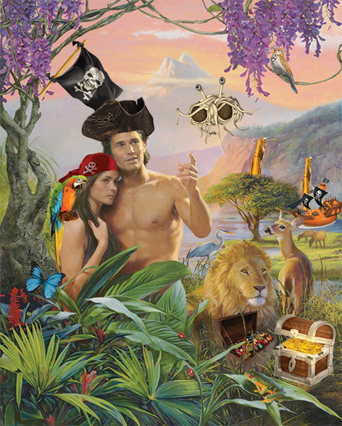 En réalité, les pirates étaient les Premier Nés de notre Créateur, des « explorateurs pacifiques répandant la bonne parole » qui distribuaient des friandises aux petits enfants, et les pirates modernes n’auraient plus rien à voir avec les « anciens boucaniers aimant s’amuser ».