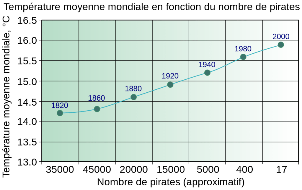 Un graphique accompagnant la lettre montre qu’alors que le nombre de pirates diminuait, la température mondiale augmentait.